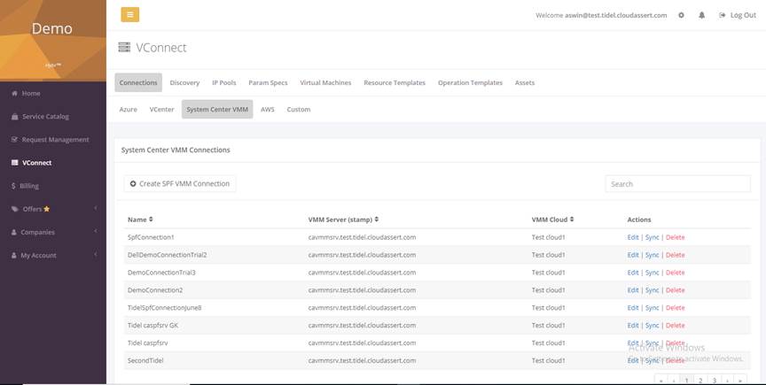 VConnect- Virtual Machine Lists in Tenant Side:
