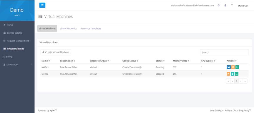 Hybr VConnect provides enterprise-grade features like VM management, VM backups, snapshots, and VM templates. It enables the administrator to set quotas for the tenant users, and it has been built with the extensibility in mind. Almost, every single operation for the VMs is extensible and customizable.