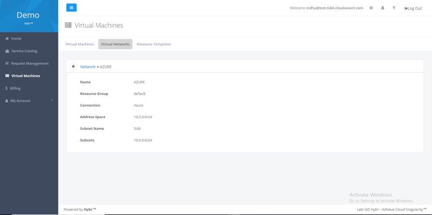 VConnect – Virtual Network Details: