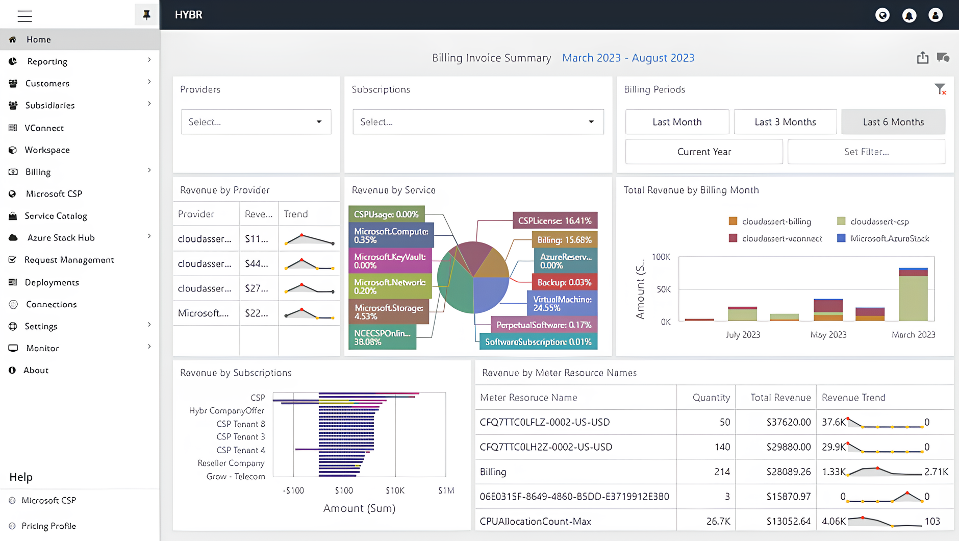 Hybr® offers seamless integrations with Microsoft CSP (Cloud Solution Provider), Public Cloud, and Data Center Platforms, providing a robust management, automation, and reseller billing experience.