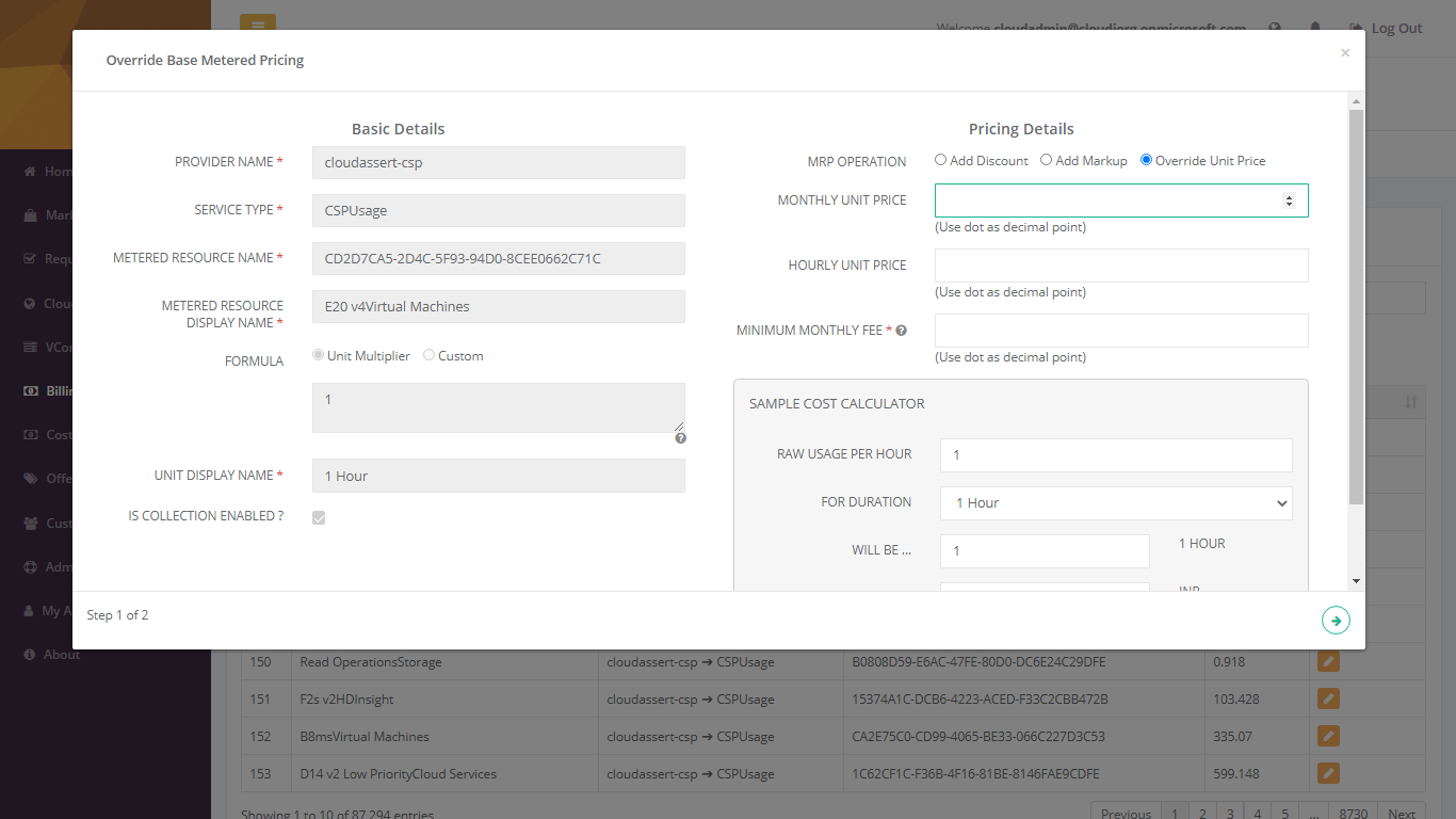 Under the Override Unite Price administrator can set the Monthly/ Hourly unit price and the minimum monthly fee if required.